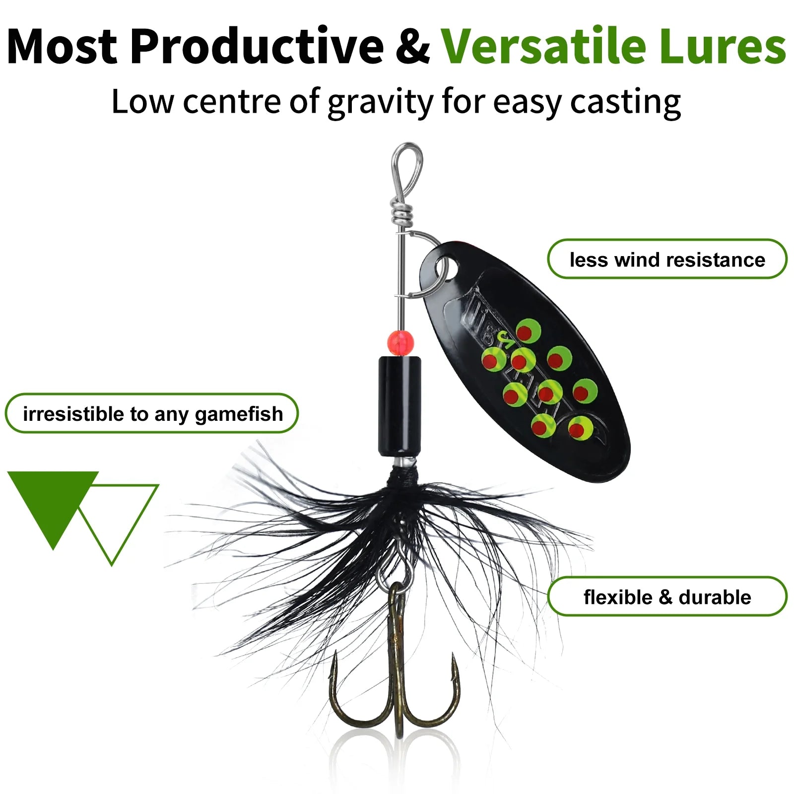 • Versatile Spinner Bait 🔱🐠: Great for targeting various fish species with spinner bait and rooster tail action.