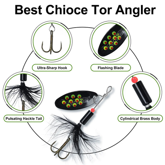 • 🐟EXCELLENT COMPONENTS: Combines a pulsating rooster tail, ultra-sharp treble hook, and premium brass body for long-lasting performance and strong enticement during retrieval.