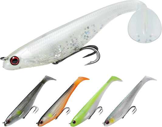 TRUSCEND Easy Catch Pre-Rigged Soft Lures, Unique Vibrating Swim Action and Trembly Sinking Move for More Bites, Amazing Soft Swimbait for Family Fishing, Fishing Lures for Bass Trout Crappie Walleye