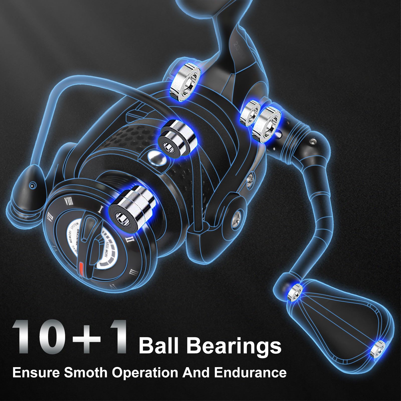 - ULTRA-LIGHTWEIGHT - The spool of our fishing reels spinning is machined of aircraft-grade aluminum to reduce weight and deliver long accurate casts. Strength beyond imagination, long-lasting durability can easily handle the big fish you are after