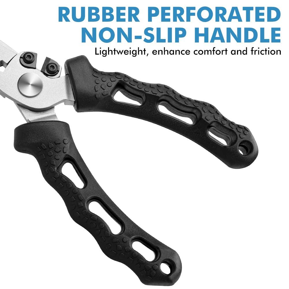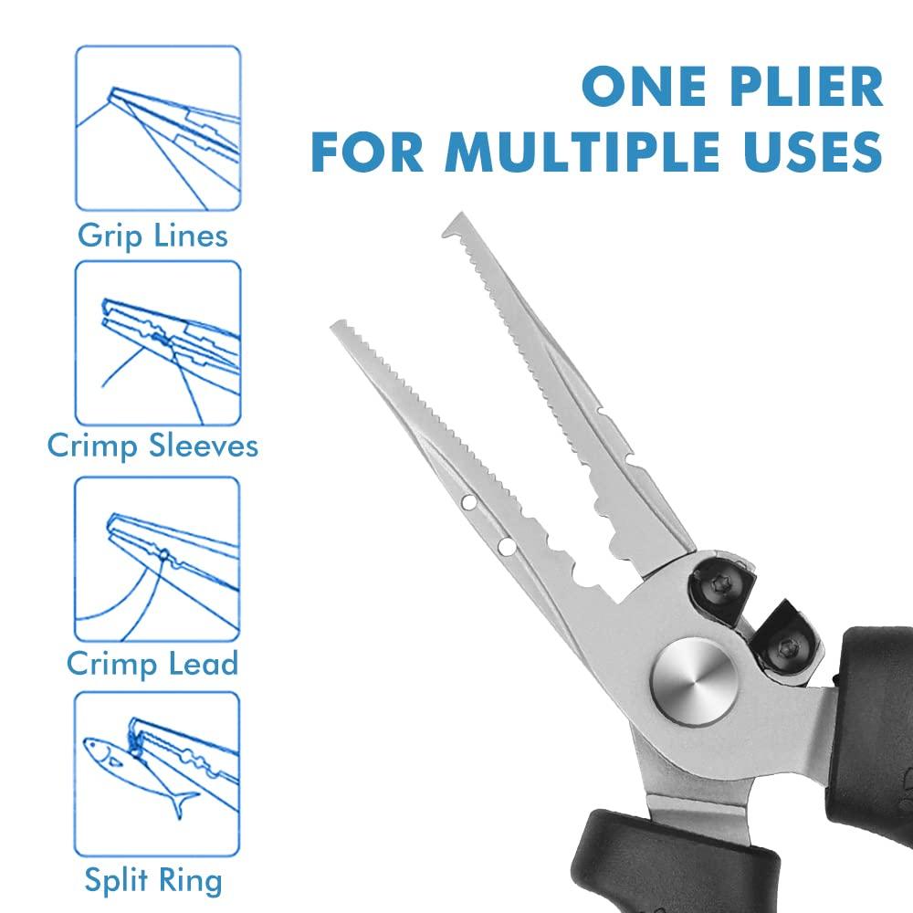 - HIGH PRACTICALITY - The aluminum provides tremendous strength. To further boost its usefulness on the water, the plier incorporates an integrated ring splitter, as well as a crimper and line cutter for enhanced convenience. The line cutter is designed to slice and dice through the toughest monofilament, fluorocarbon, and even braided lines. An exceptional multi-use tool that is designed to meet and exceed your fishing needs, don’t set off on your next adventure without the plier.