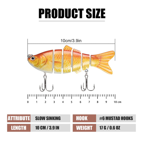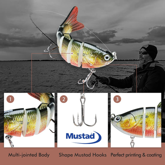 - 🐟Lifelike Bass Lures: 6-segment design creates realistic movements, perfect for attracting more fish.