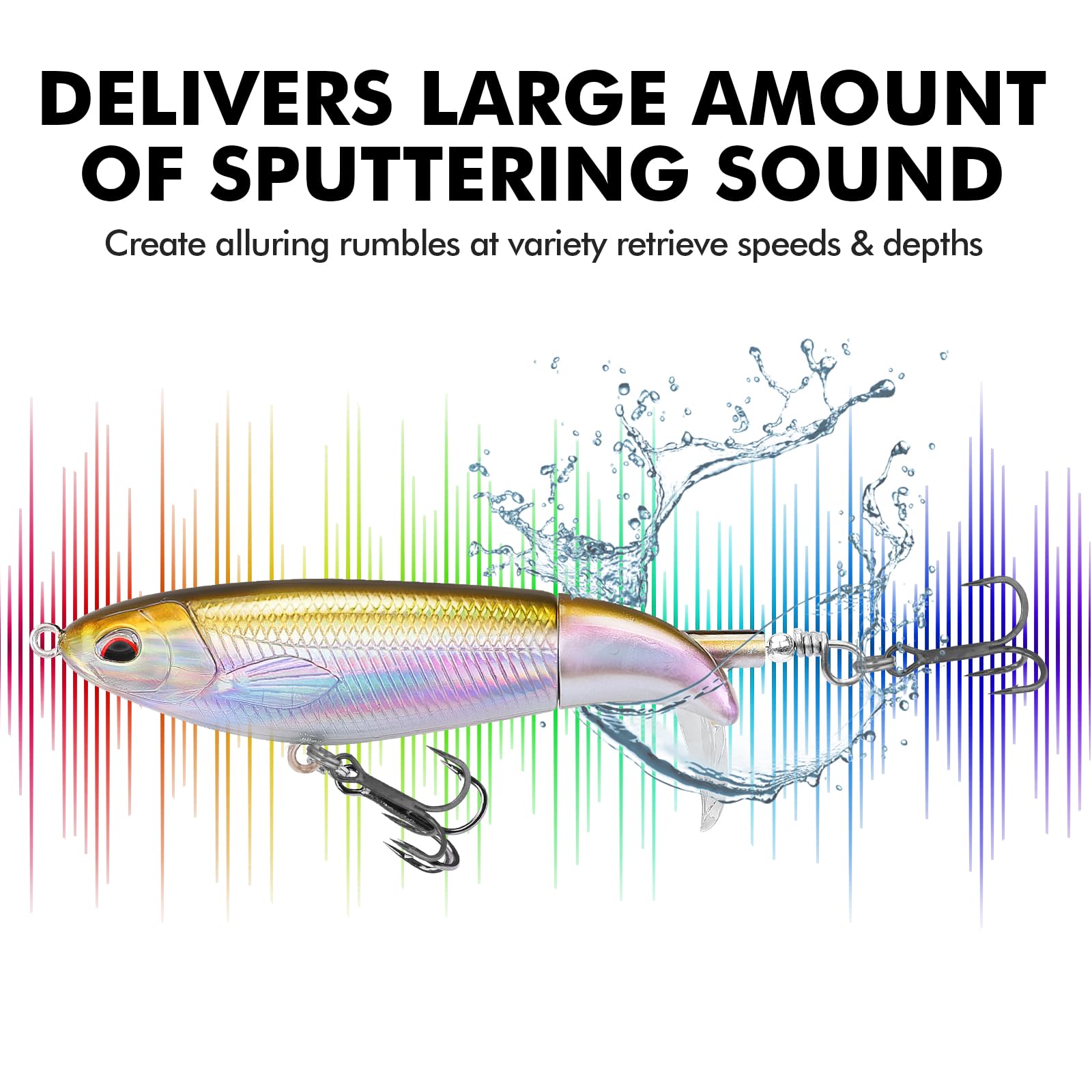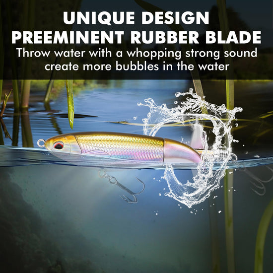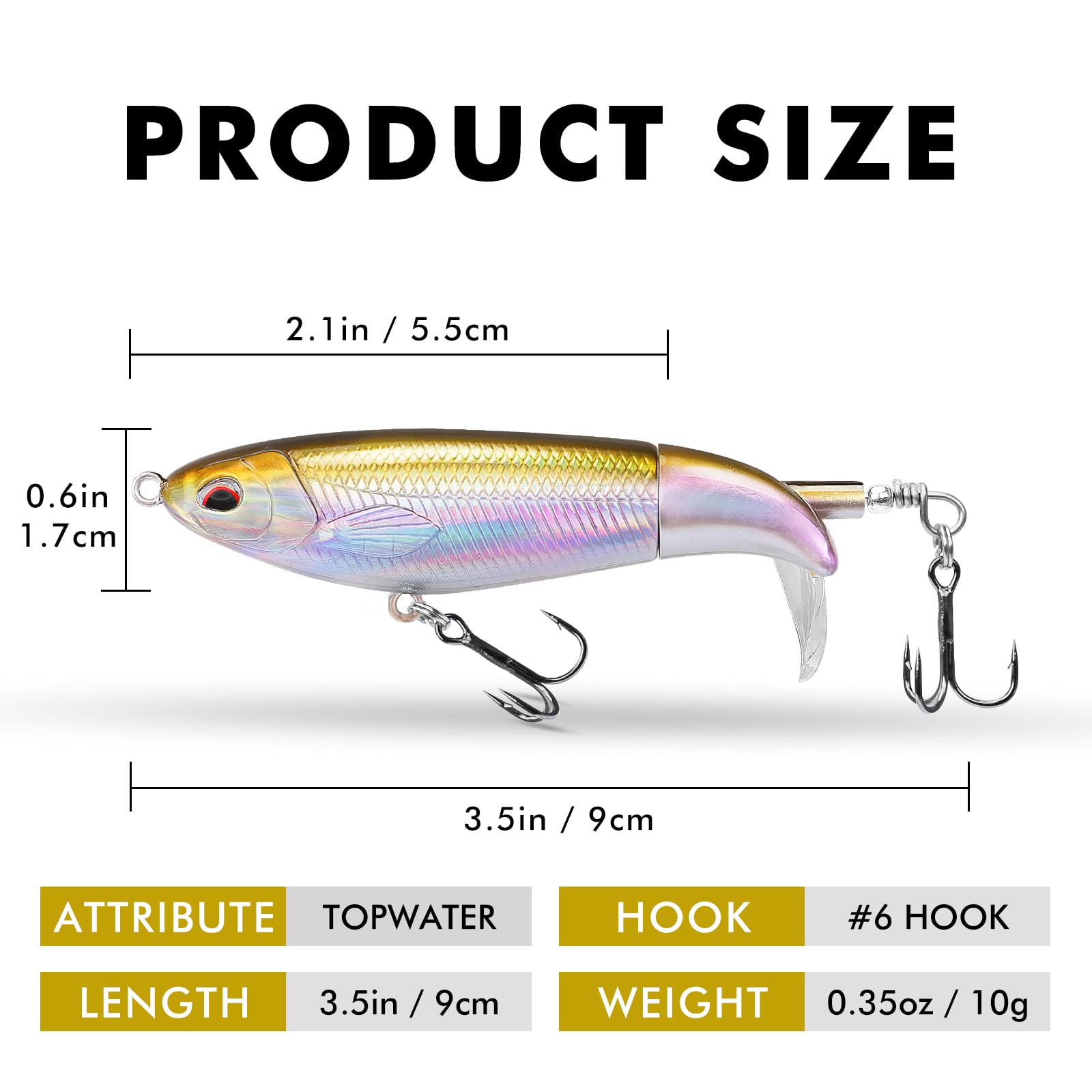 - HUGE TOPWATER BLOWUP - Fishing Baits have a extra weight on the belly, control barycenter easily and make it do a farther casting distance effortless. When you rapid and steady retrieve the bait, the rotating tail will spin and make splashed water. It's really hard for bass to resist it!