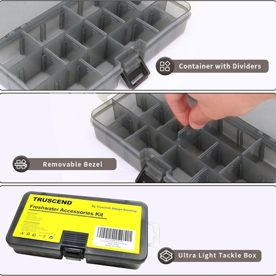 • Tackle Box: Compact, compartmentalized for easy organization and portability.