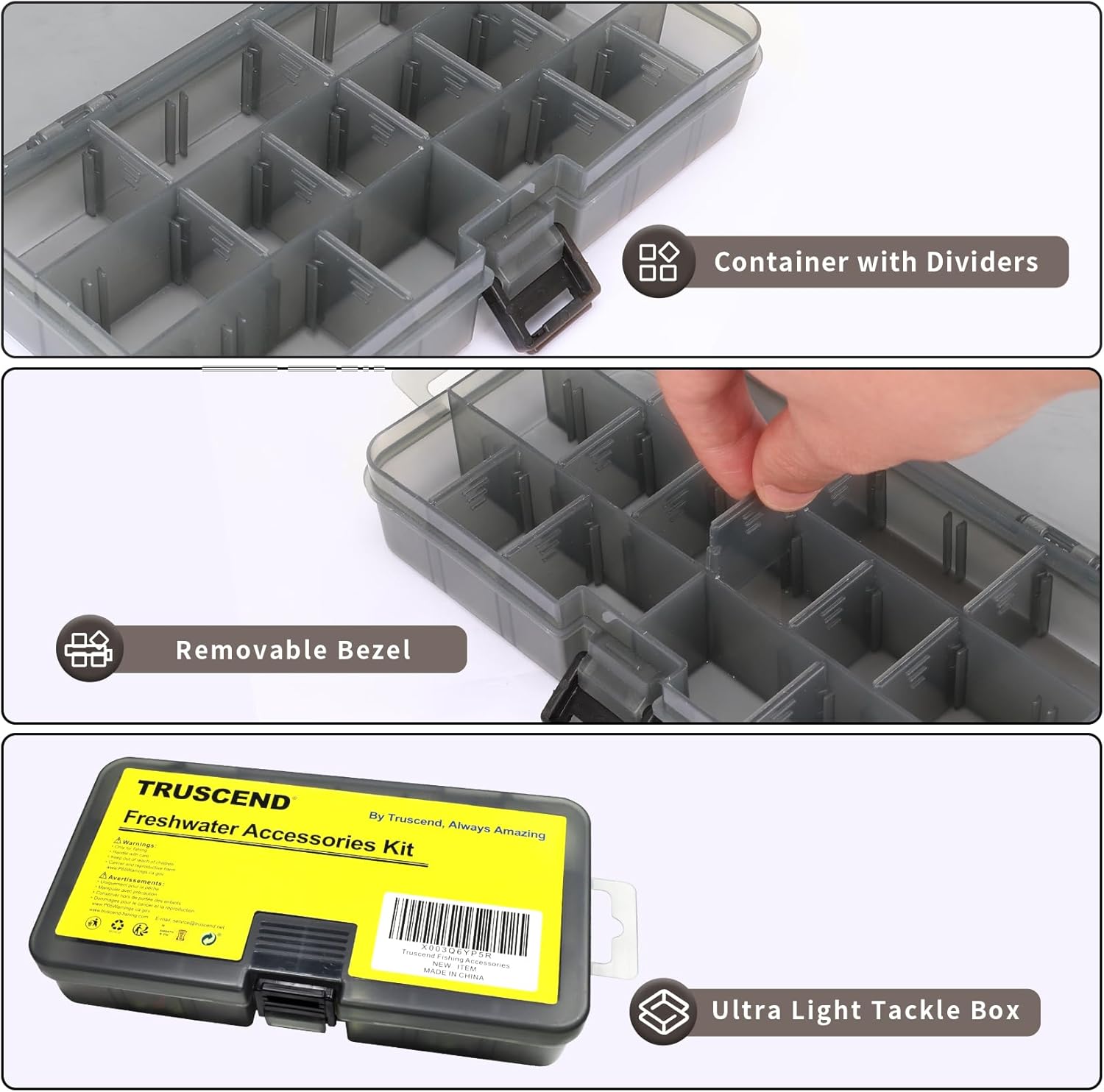 • 🎅🐟Robust and Portable Tackle Box: The plastic fishing tackle box is provided free for you, all baits and accessories are packaged in the box for easy portability. Identify your fishing tools easily with a compartmentalized and easy-to-see plastic tackle box, it allows you to sort your lure accessories in one glance. You can easily put it into your fishing seat box, fishing backpack, and fishing vest pocket, making traveling around with your fishing set much easier.