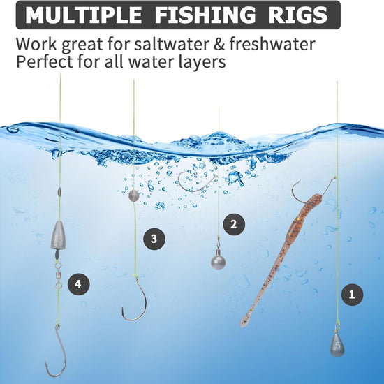 • ❄️🐟Premium & High Quality Material - Most fishing kits are made of anti-corrosion stainless steel, which is not easy to deform and has strong corrosion resistance in the sea. All high quality and durable fishing gear kits have been carefully assembled. Fishing hooks come in different sizes to suit different fish, fishing weights and split shots are finely machined, giving you more precise control of your fishing rig.