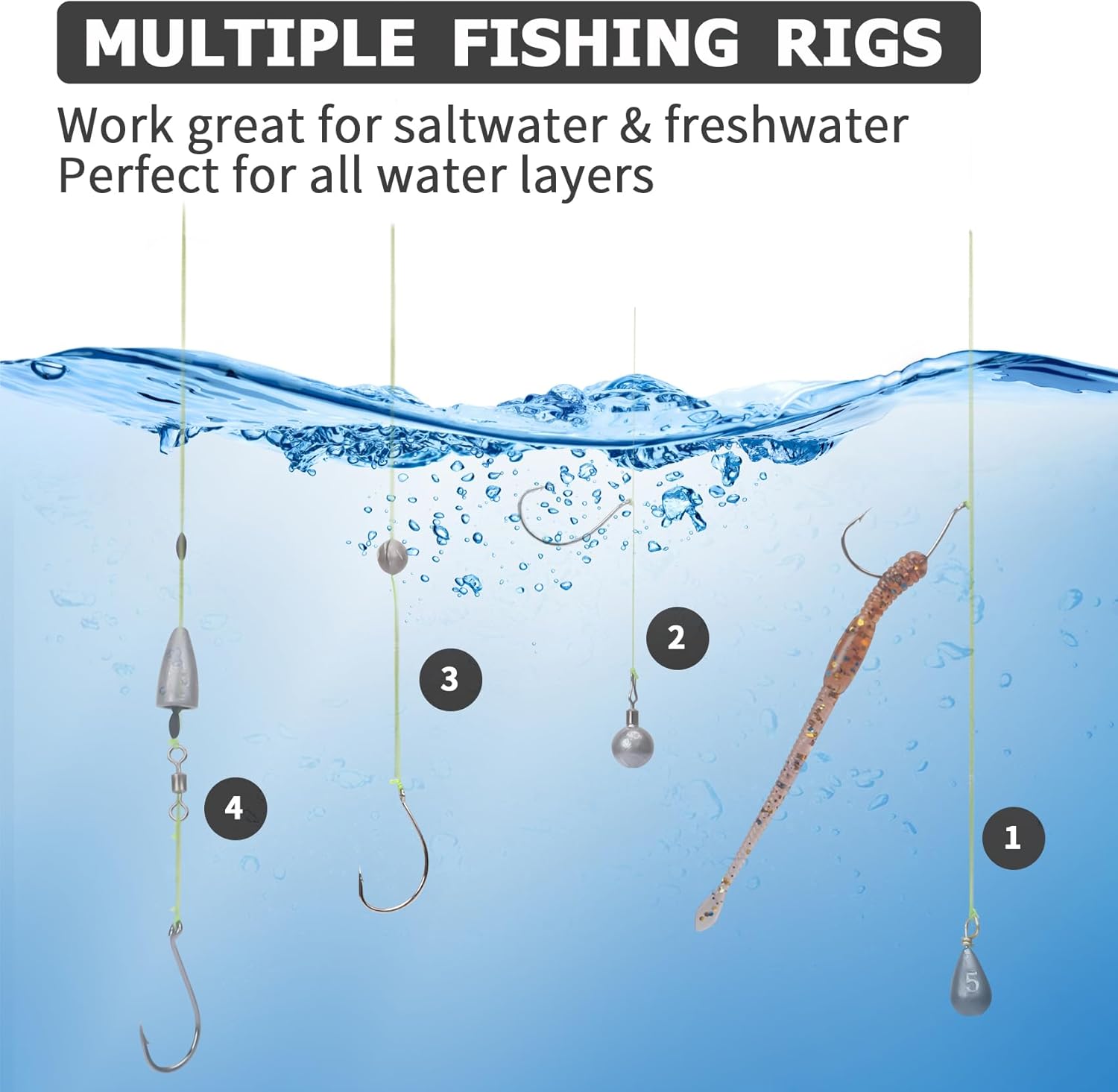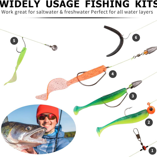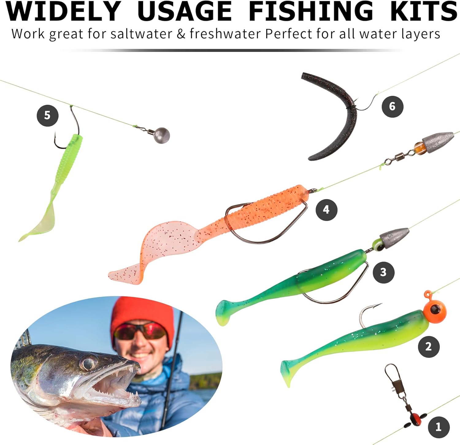 • ❄️🐟Widely Usage Fishing Tackle Set - Excellent easy-to-pack stowaway case for all of your lures and fishing tools. The variety and number of accessories allow you to combine your own fishing rig with confidence. Such as Split Shot Rig, Jig Head Rig, Texas Rig, Carolina rig, Float Rig, Three Way Rig, etc. Unleash your imagination to make different combinations. Complete assortment of fishing accessories kit is suitable for any angler in any season in any water conditions!