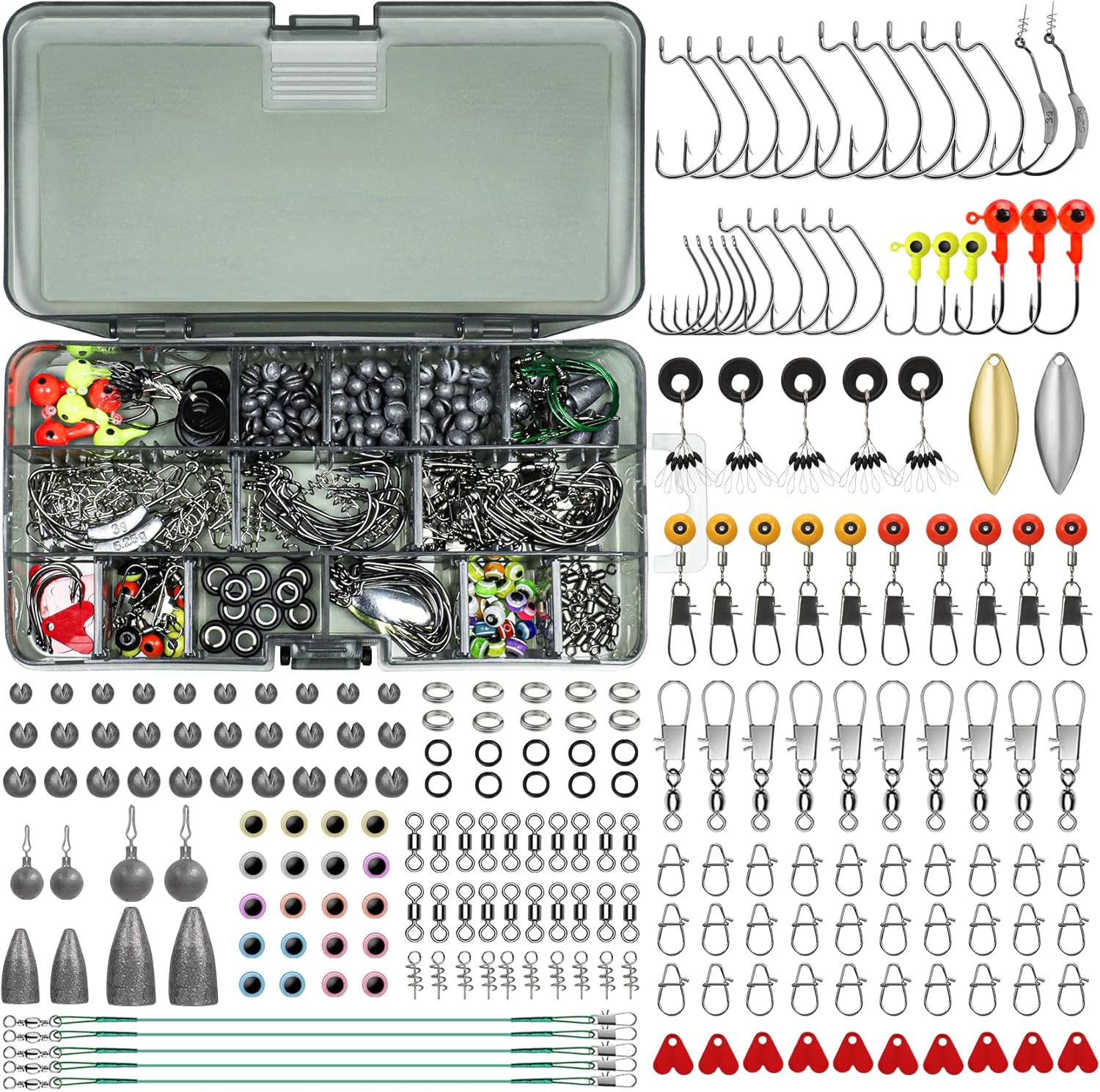 • Kit Contents: 240 pcs, including crankbaits, pencils, poppers, bait-rigs, minnows, VIB, spoons, spinners, paddle tail swimbait, grubs, plastic worms, jig heads, offset hooks, beads, rings, blades, fishing weights, fishing leader, fishing snaps, swivels, and a tackle box.