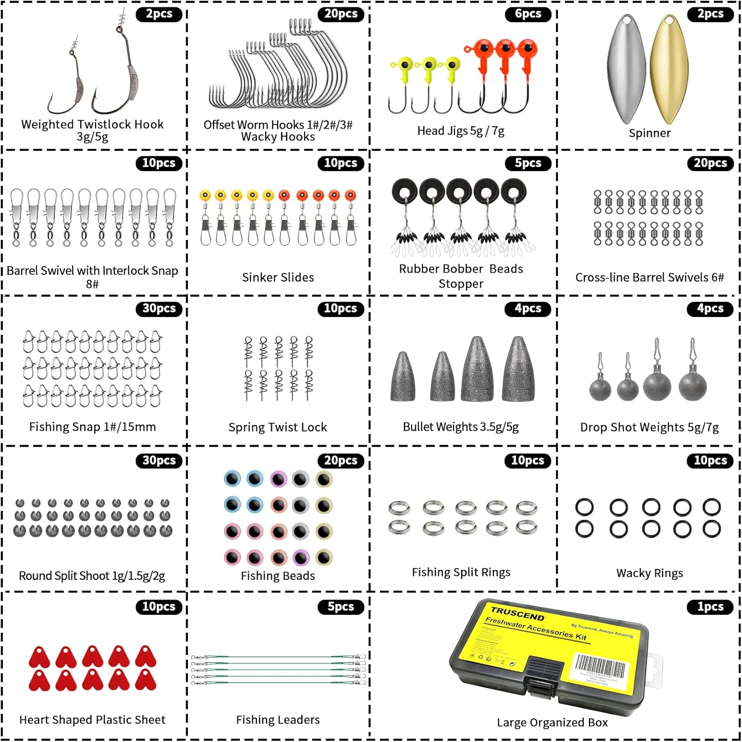This TRUSCEND premium fishing tackle kit offers a wide range of essential accessories, including tail swimbaits, grubs, plastic worms, jig heads, hooks, beads, rings, blades, fishing weights, leaders, snaps, swivels, and a tackle box. Crafted from high-quality ABS material and stainless steel, this durable set resists corrosion in saltwater and promises long-lasting performance. Suitable for both saltwater and freshwater fishing, it includes topwater and slow-sinking lures, perfect for various fish species like bass, trout, and salmon. The convenient, compartmentalized tackle box makes it easy to organize and transport your gear for a hassle-free fishing experience.