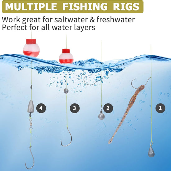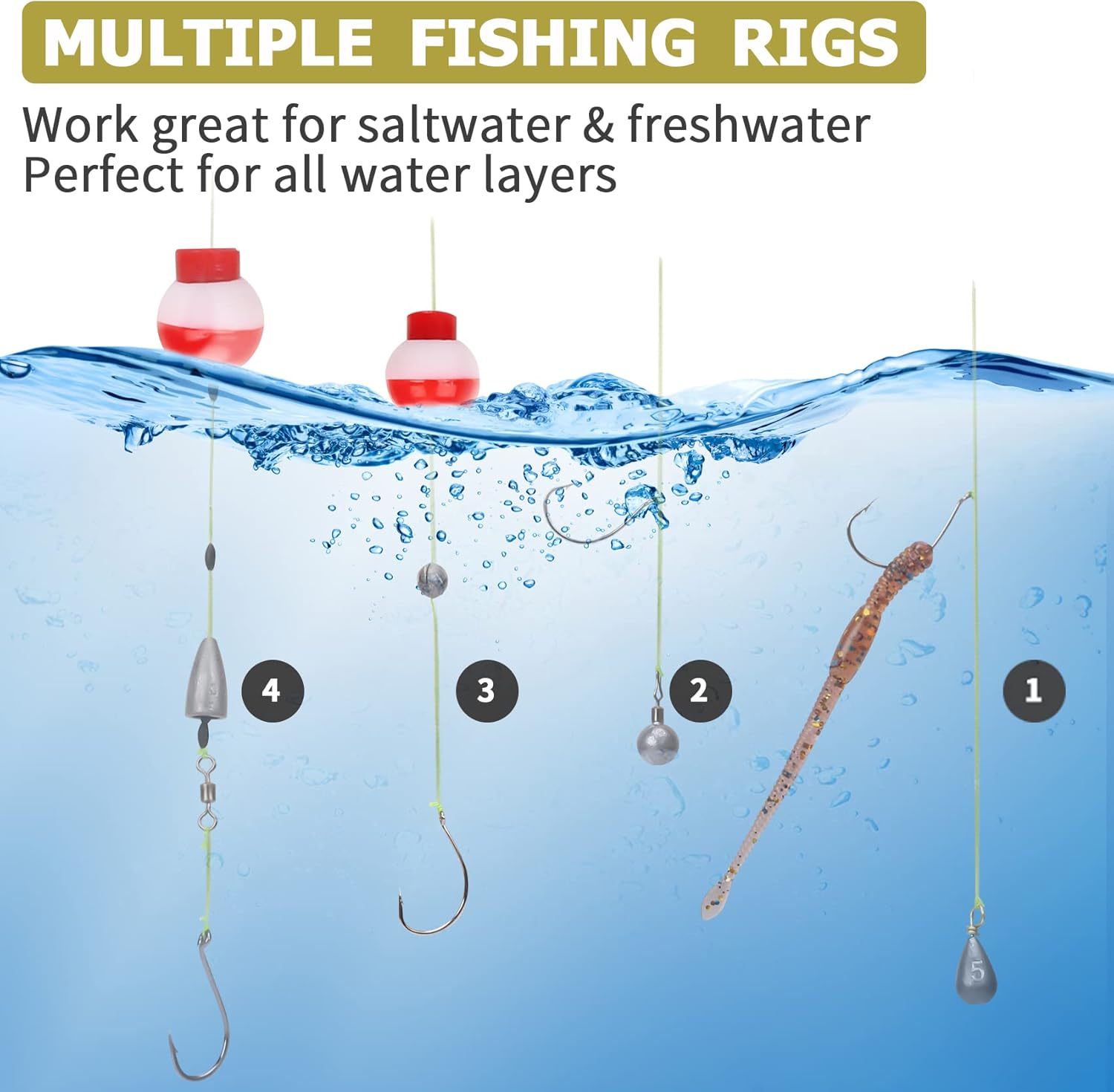• ❄️🐟Premium & High Quality Material - Most fishing kits are made of anti-corrosion stainless steel, which is not easy to deform and has strong corrosion resistance in the sea. All high quality and durable fishing gear kits have been carefully assembled. Fishing hooks come in different sizes to suit different fish, fishing weights and split shots are finely machined, giving you more precise control of your fishing rig.