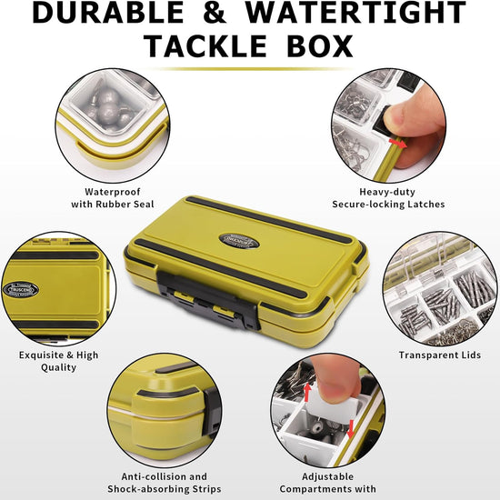 • 🎅🐟Robust and Portable Tackle Box: The plastic fishing tackle box is provided free for you, all baits and accessories are packaged in the box for easy portability. Identify your fishing tools easily with a compartmentalized and easy-to-see plastic tackle box, it allows you to sort your lure accessories in one glance. You can easily put it into your fishing seat box, fishing backpack, and fishing vest pocket, making traveling around with your fishing set much easier.