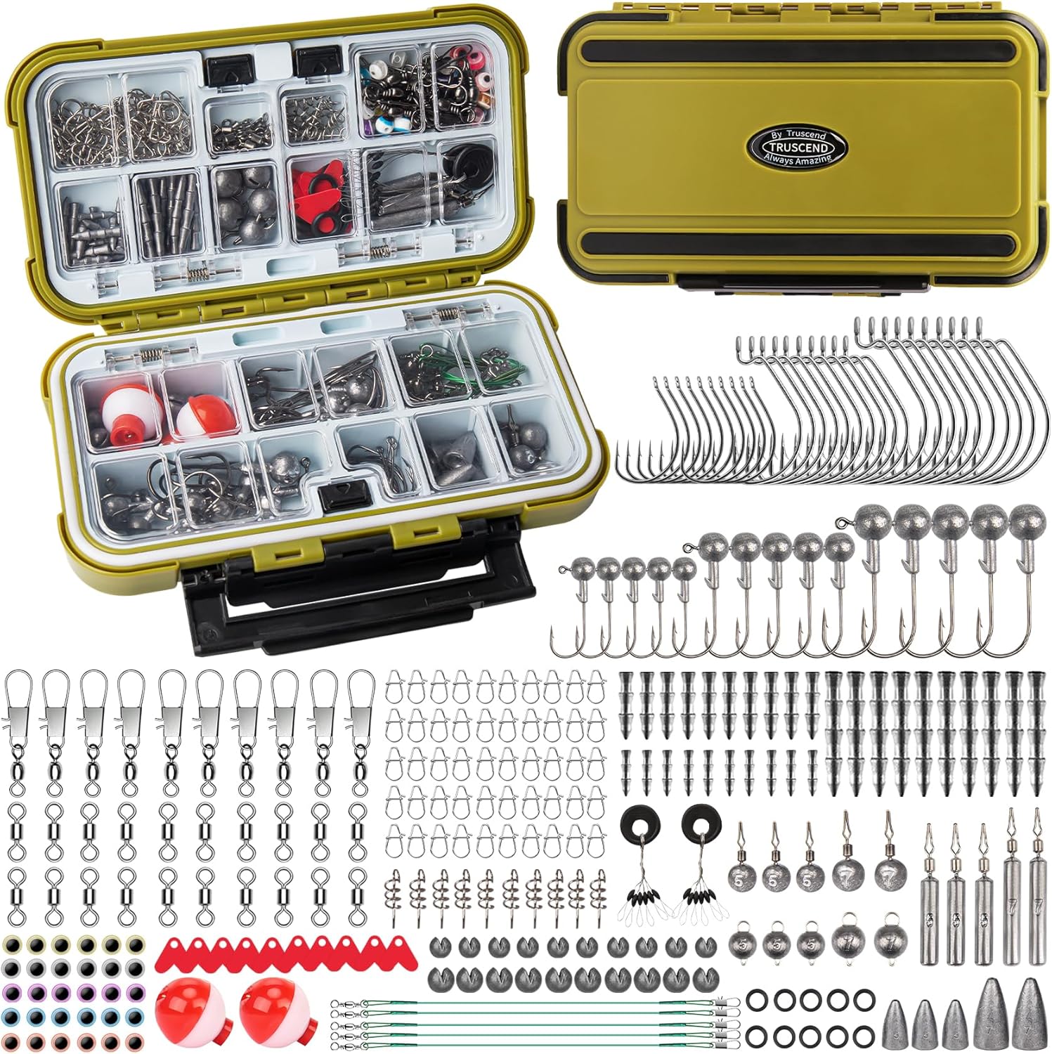 This TRUSCEND premium fishing tackle kit offers a wide range of essential accessories, including tail swimbaits, grubs, plastic worms, jig heads, hooks, beads, rings, blades, fishing weights, leaders, snaps, swivels, and a tackle box. Crafted from high-quality ABS material and stainless steel, this durable set resists corrosion in saltwater and promises long-lasting performance. Suitable for both saltwater and freshwater fishing, it includes topwater and slow-sinking lures, perfect for various fish species like bass, trout, and salmon. The convenient, compartmentalized tackle box makes it easy to organize and transport your gear for a hassle-free fishing experience.