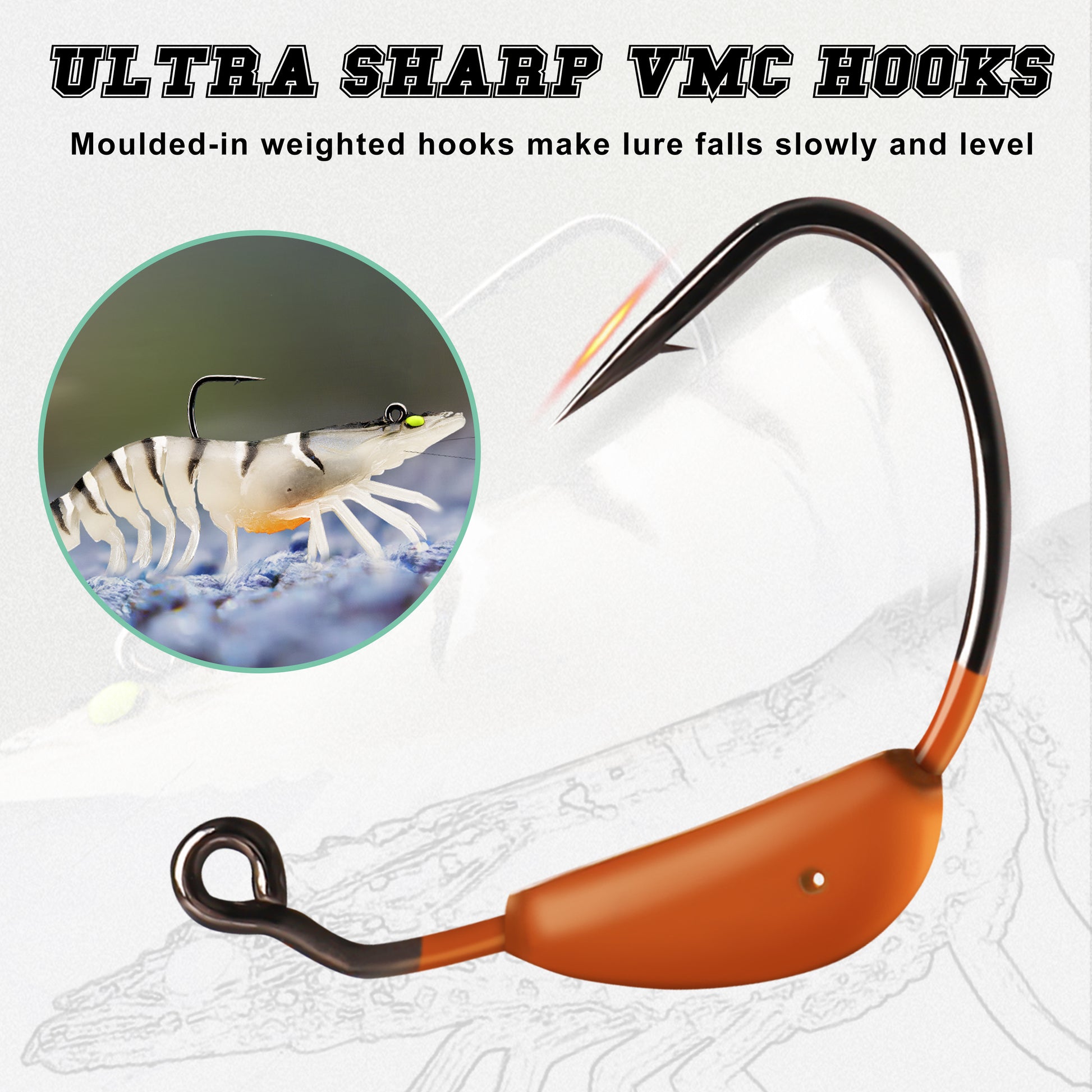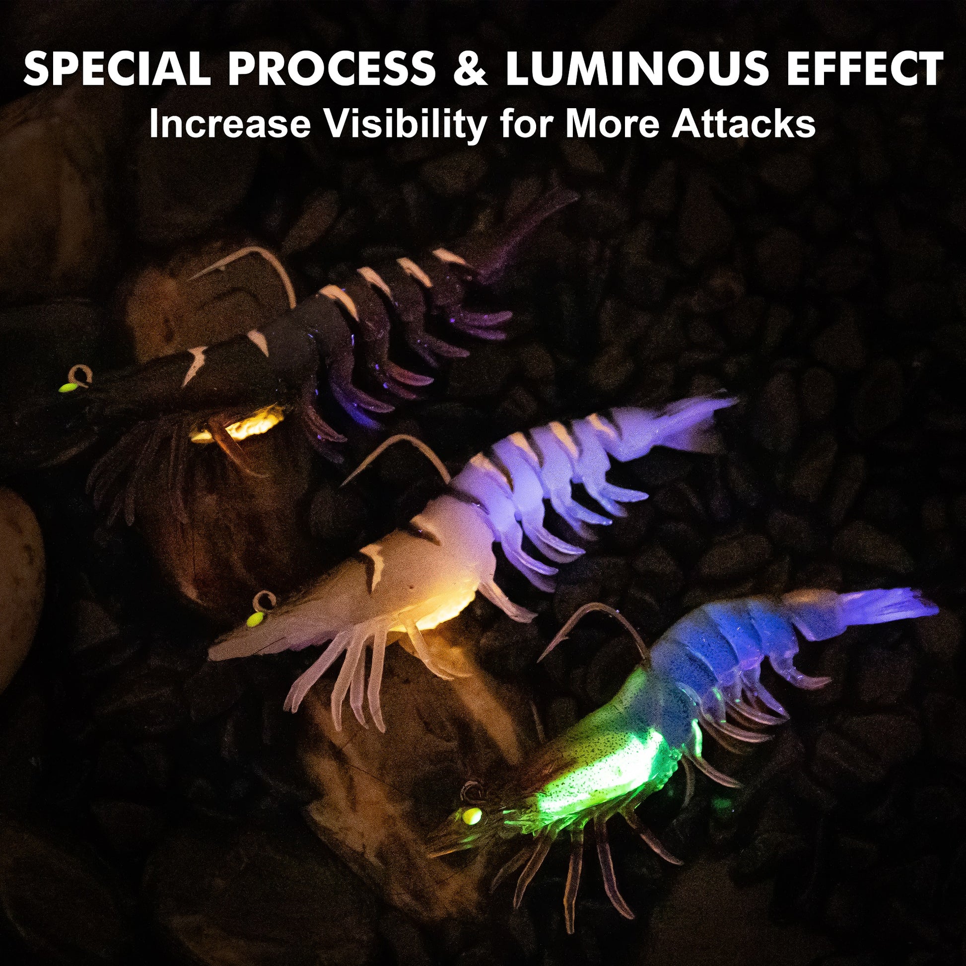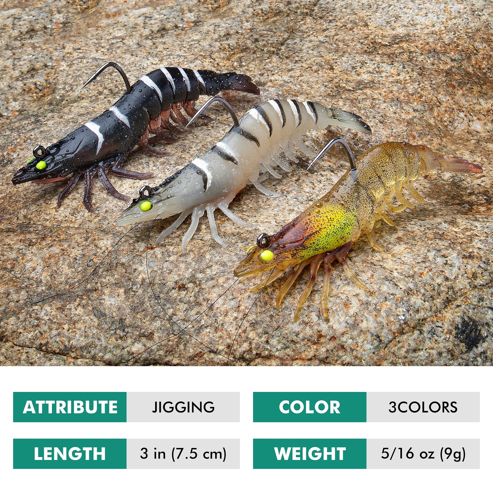 • 🐟Pre-Rigged Jig Head Shrimp Lures: Good for opportunistic predators.