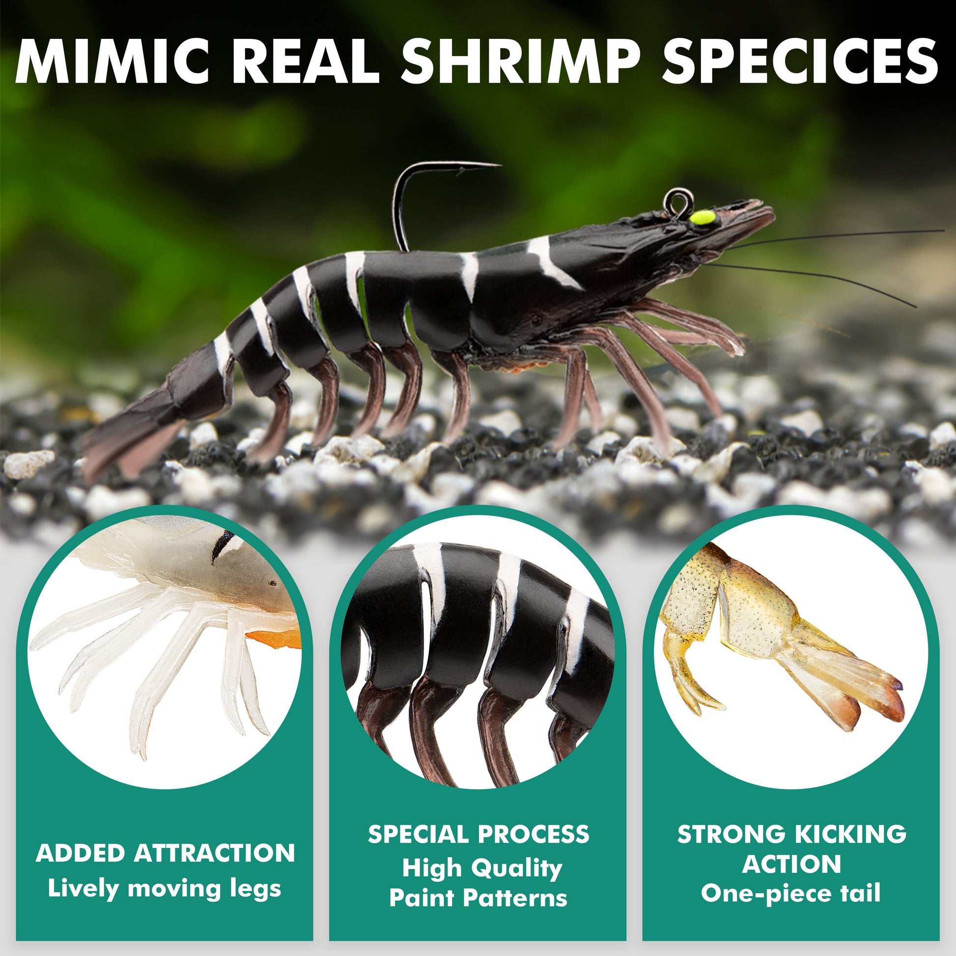 • 🐟Realistic Shrimp Lures Action: The Truscend shrimp Baits features a segmented body that creates lifelike swimming movements in the water. The special tail generates a kicking action, while the lively moving legs and antennae perform realistic actions on the retrieve and the drop, greatly enhancing its attractiveness to fish.